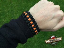 Bransoleta z Paracordu typ "Cobra - Black - Orange yellow" z wplecioną plastikową klamrą