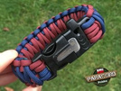 Bransoleta z Paracordu typ "King Cobra" na klamrze z wbudowanym gwizdkiem, krzesiwem i blachą, Kolor "Dark red - Dark blue"