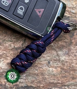 Brelok survivalowy z Paracordu 550 o splocie "Royal Box Knot", kolor: "Dark blue - Dark red"